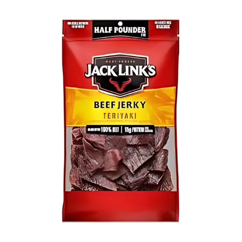 Jack Link’s Beef Jerky, Peppered, 1/2 Pounder Bag – Flavorful Meat Snack, 9g of Protein and 80 Calories, Made with Premium Beef – 96% Fat Free, No Added MSG** or Nitrates/Nitrites
